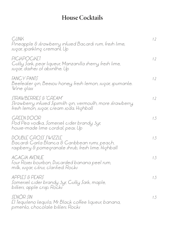 Pod Pea vodka, Somerset cider brandy 3yr, house-made lime cordial, peas. Up