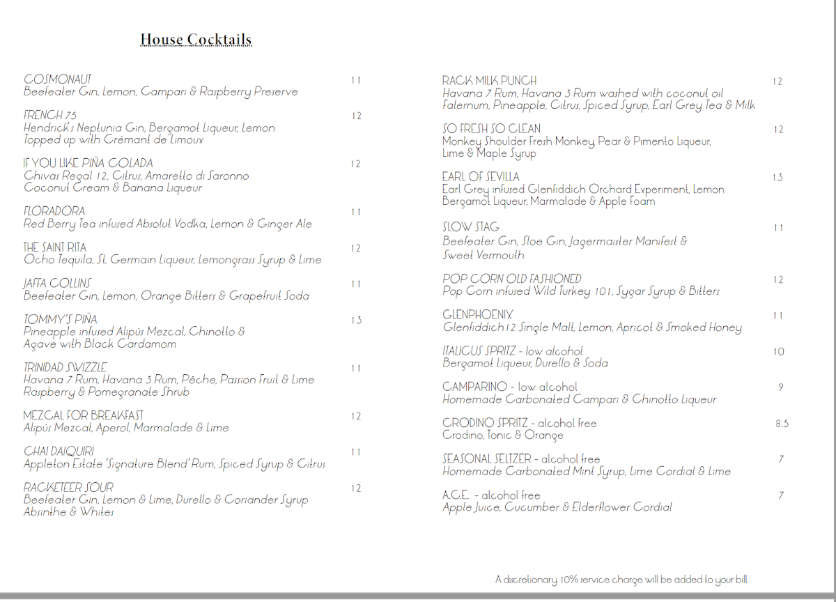In summary, The Racketeer is a hidden gem in the heart of King's Cross, offering an extensive menu that blends comfort with innovation. Its high-quality ingredients, diverse options, and exceptional service make it a standout choice for anyone looking to enjoy a delicious and memorable meal in London.